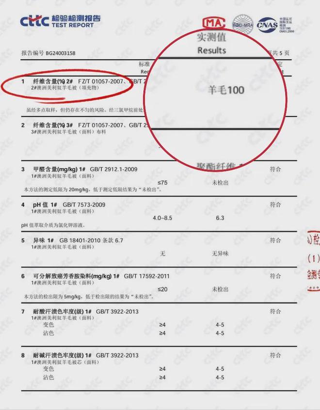 怕大家不信,我们还要来了检测报告,是线%澳洲进口美利奴绵羊毛,货真价实: